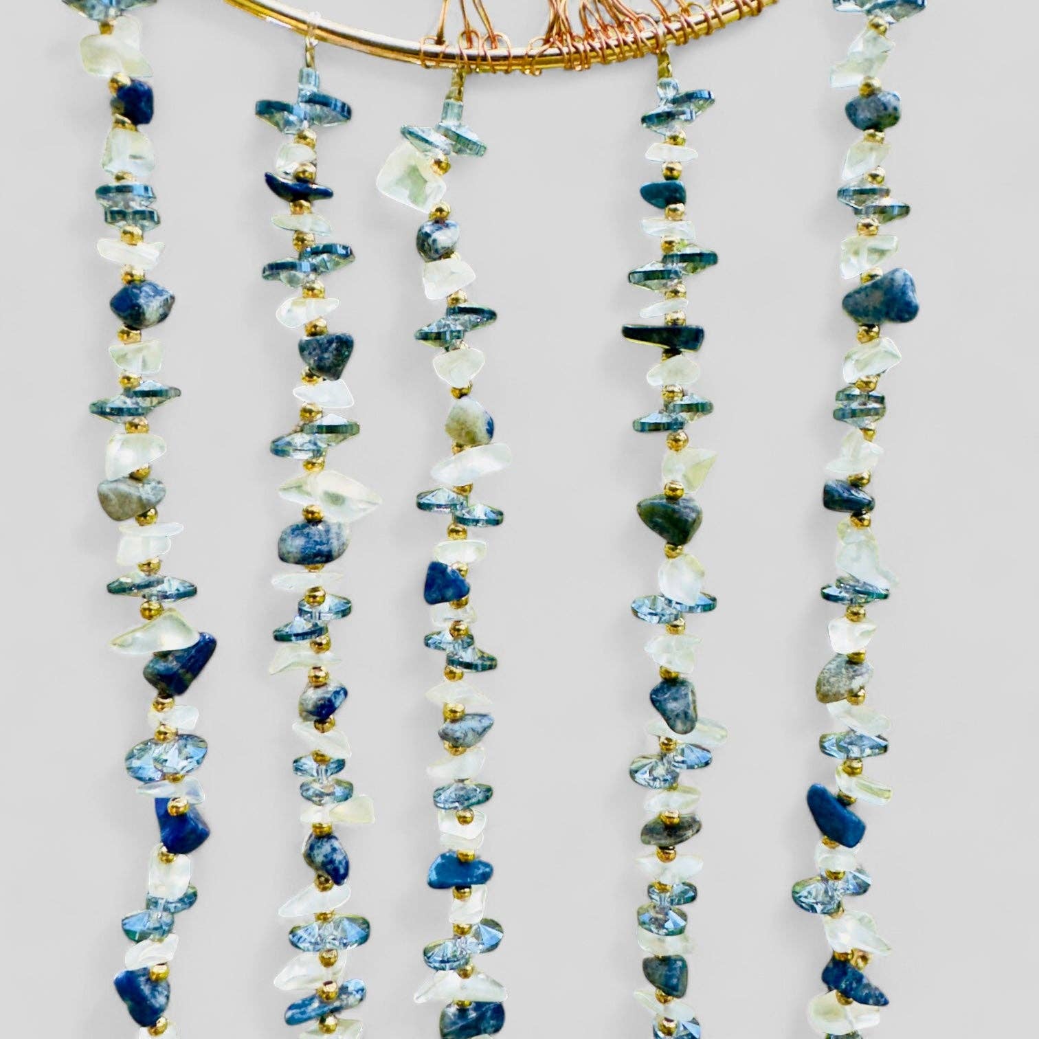 Gold Metal Crescent Moon Dreamcatcher Suncatcher with Lapis Lazuli Tree of Life & Hanging Jewel Charms