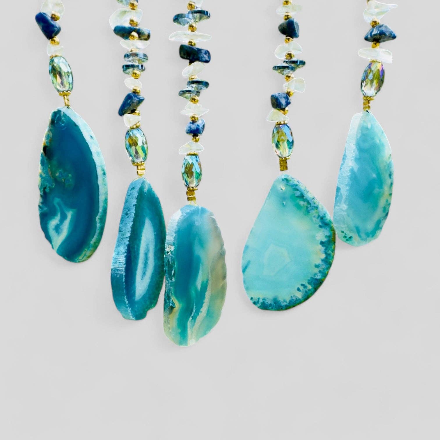 Material: Metal crescent moon, natural lapis lazuli stones, hanging charms & beads