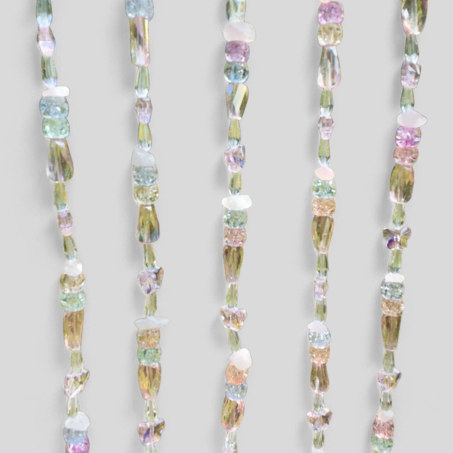 This is an absolutely stunning, handmade dreamcatcher that can be used in your homer in various areas. It features a crescent moon style with a tree of life made from rose quartz stones and has 5 strands hanging from it with natural stones and prismatic beads. Perfect for your home or as a very special gift!